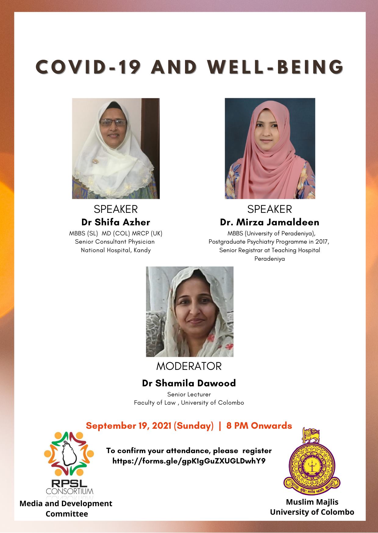 Next programme of the month on COVID-19 Awareness Campaign. “Covid-19 and Well-Being”. Join us on 19 September, 2021 at 8PM